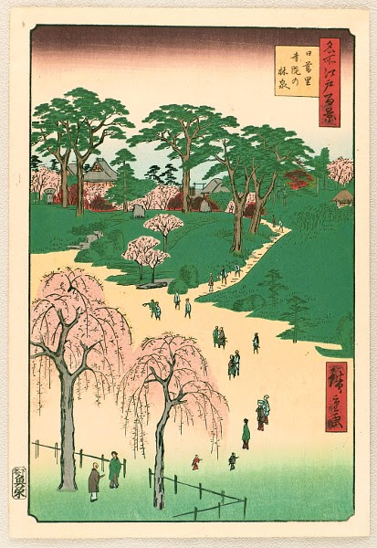 One Hundred Famous Views of Edo - Higurashi-no-sato, Nippori - Reproduction